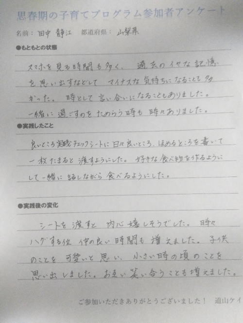 そんな時に、私が行っている思春期の子育てをサポートするオンラインプログラムに参加してくださいました。
