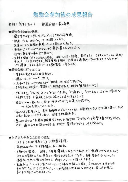 星野さん以外にも、子どもとの接し方を変えただけで学校に行けるようになった方はたくさんいらっしゃいます。